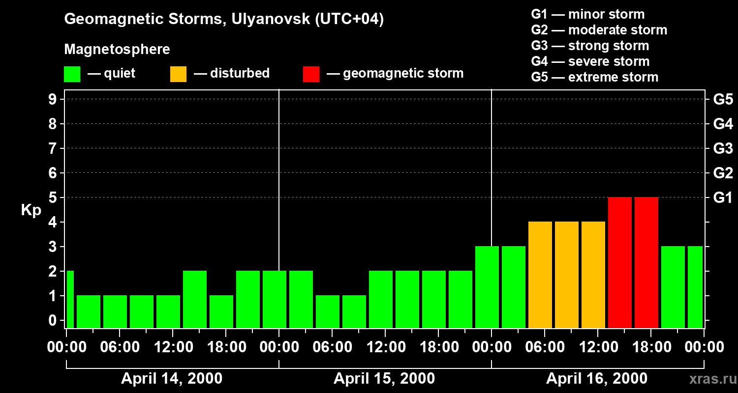 Geomagnetic storms in Ulyanovsk on Apr 16, 2000