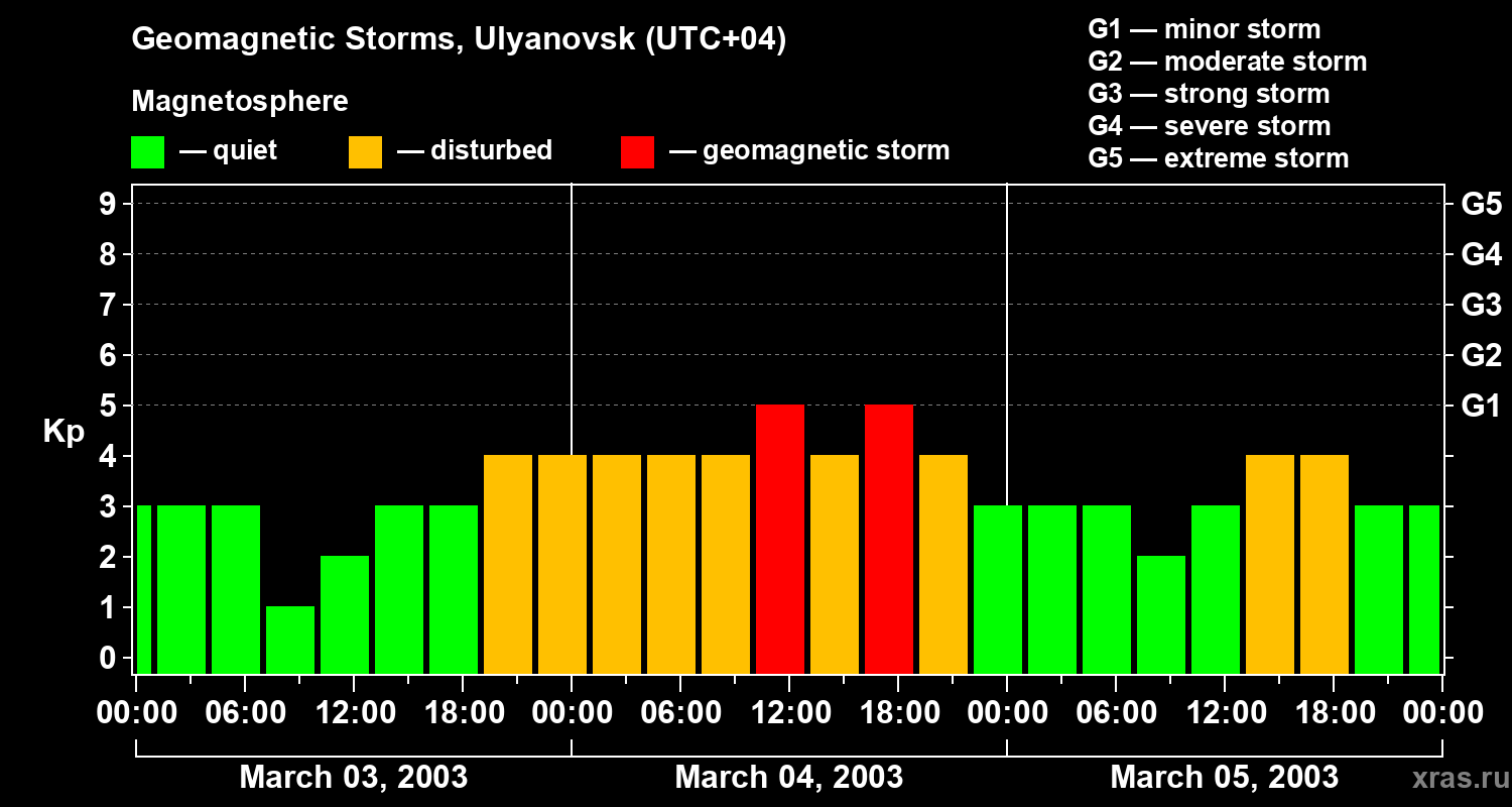 Geomagnetic storms in Ulyanovsk on Mar 05, 2003