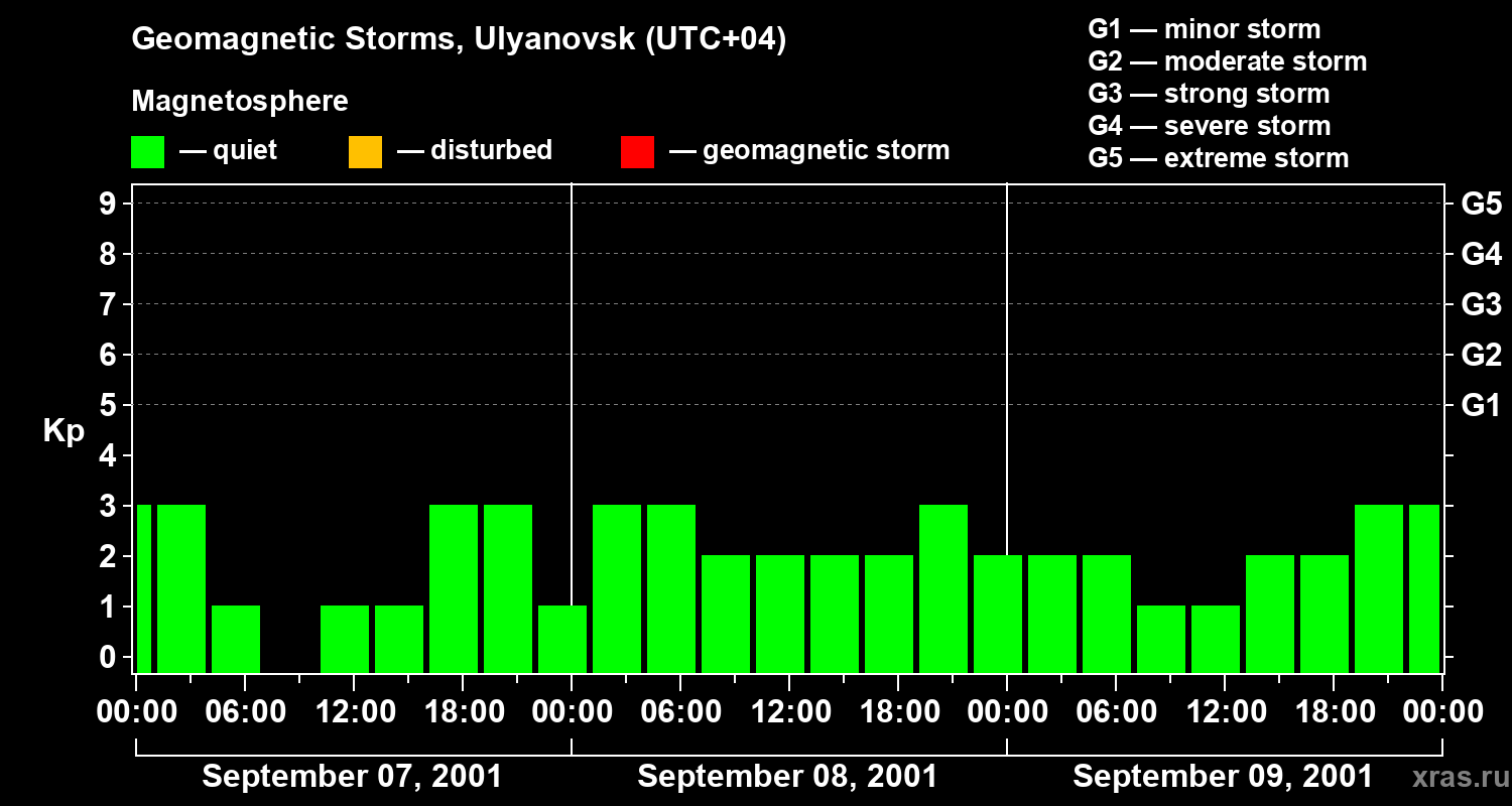 Geomagnetic storms in Ulyanovsk on Sep 09, 2001