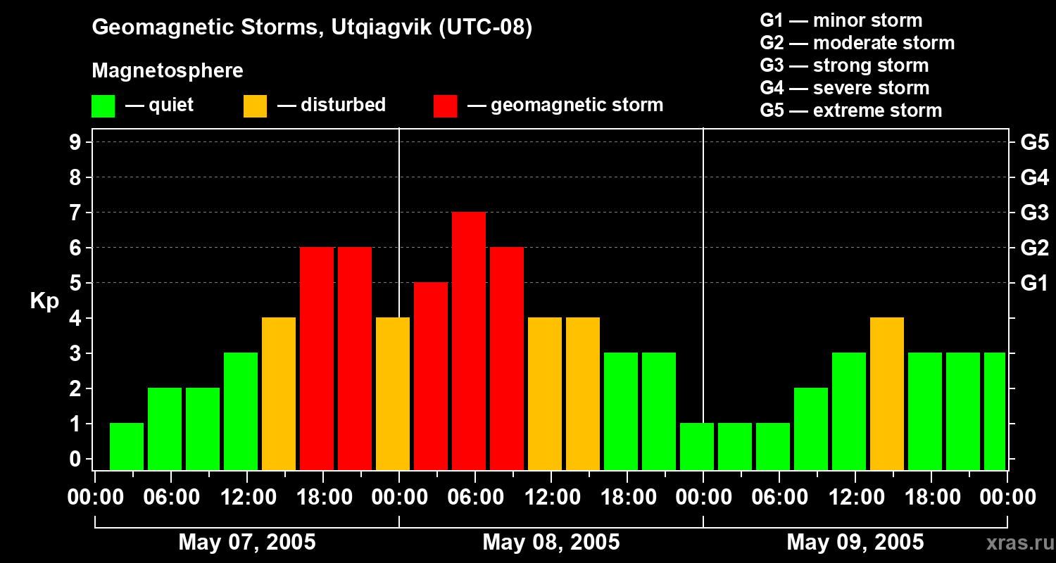 Geomagnetic storms in Utqiagvik — May 09, 2005