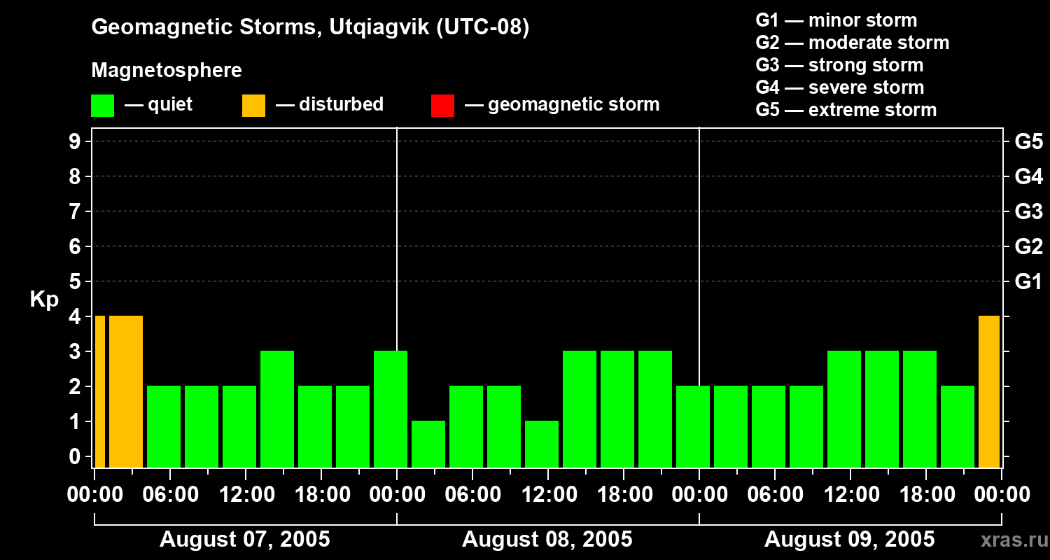 Geomagnetic storms in Utqiagvik — Aug 09, 2005