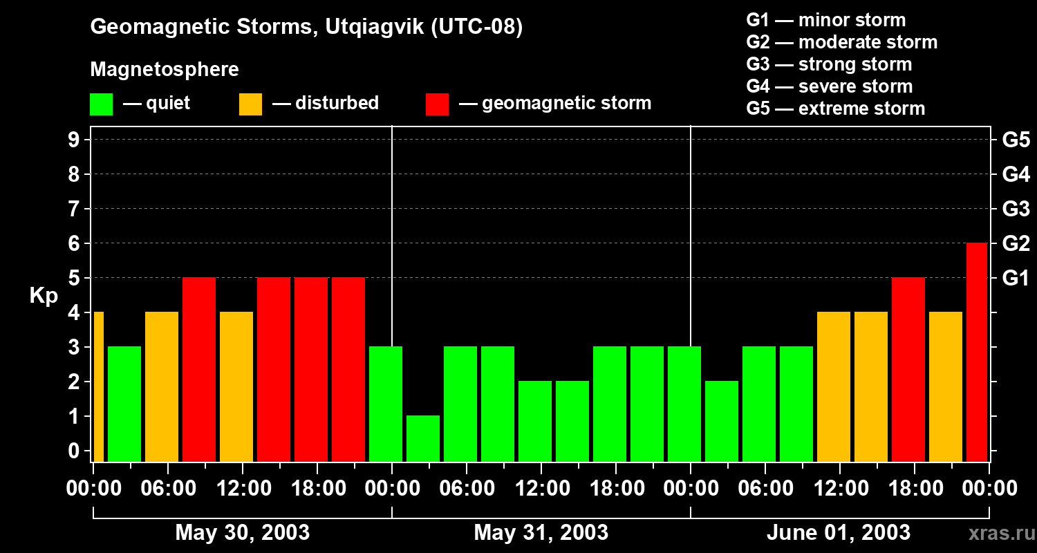 Geomagnetic storms in Utqiagvik on Jun 01, 2003