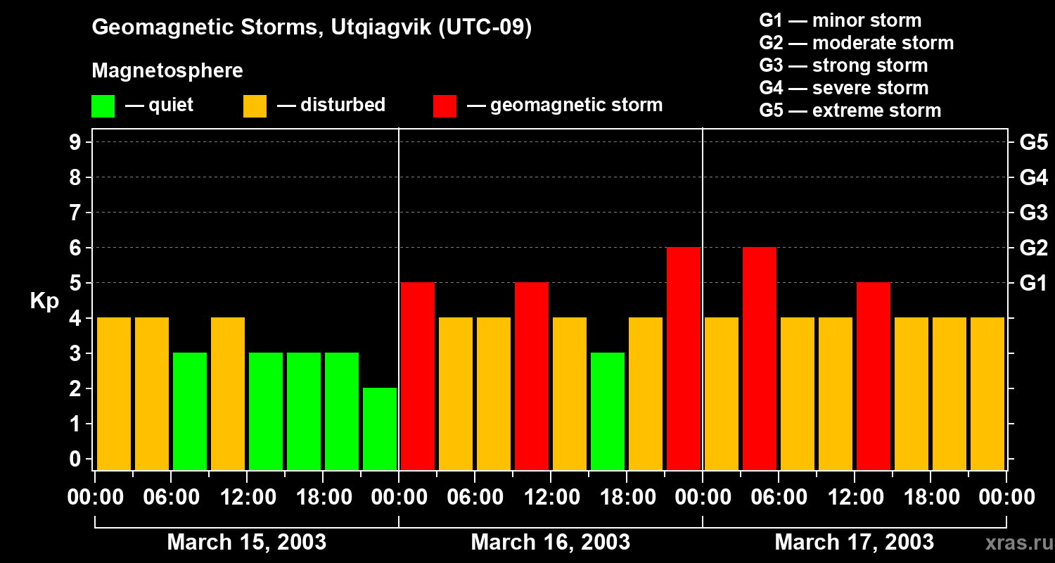 Geomagnetic storms in Utqiagvik — Mar 17, 2003