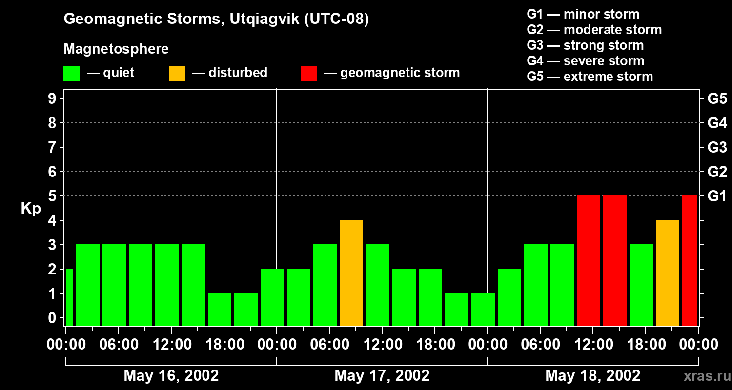 Geomagnetic storms in Utqiagvik — May 18, 2002