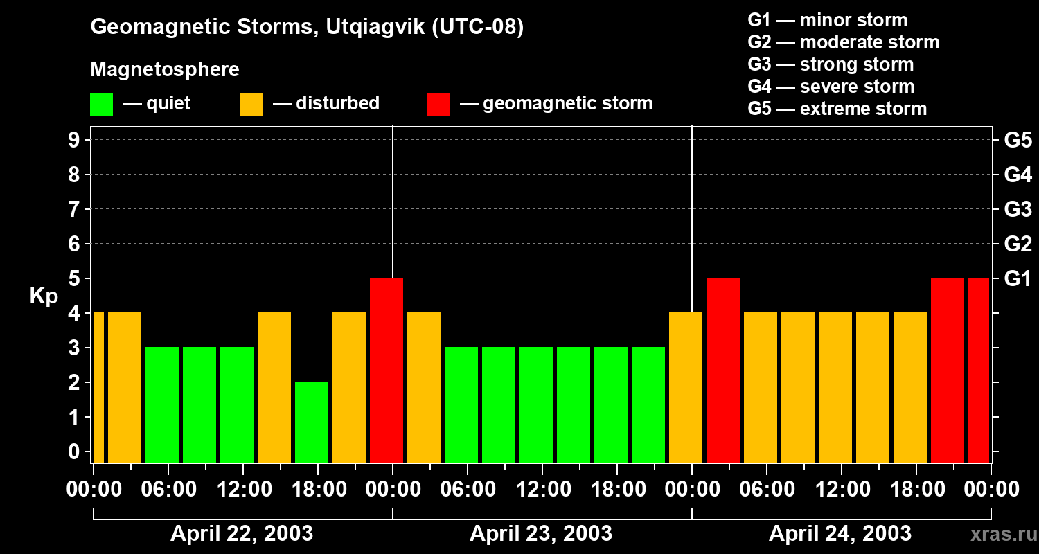 Geomagnetic storms in Utqiagvik — Apr 24, 2003