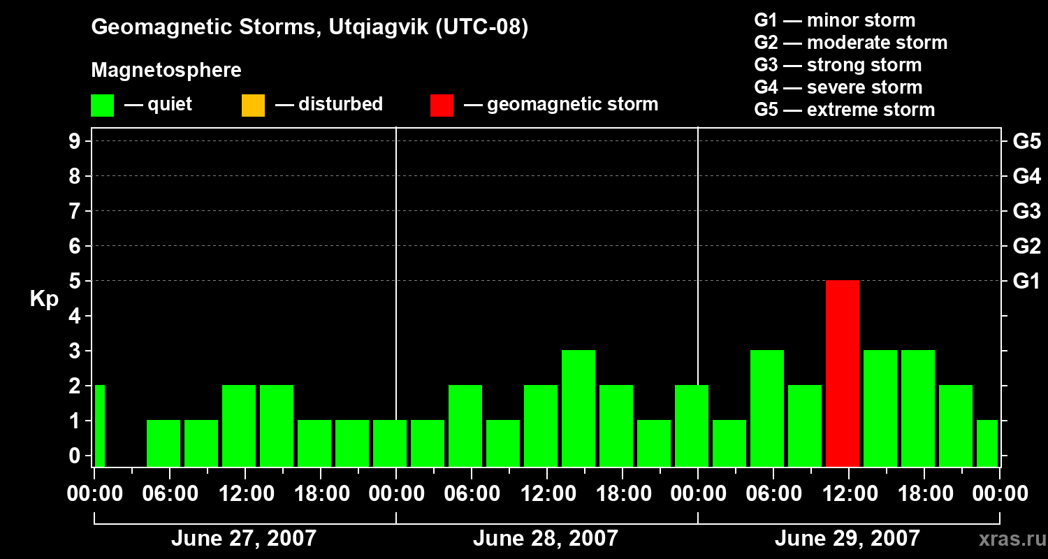 Geomagnetic storms in Utqiagvik — Jun 29, 2007