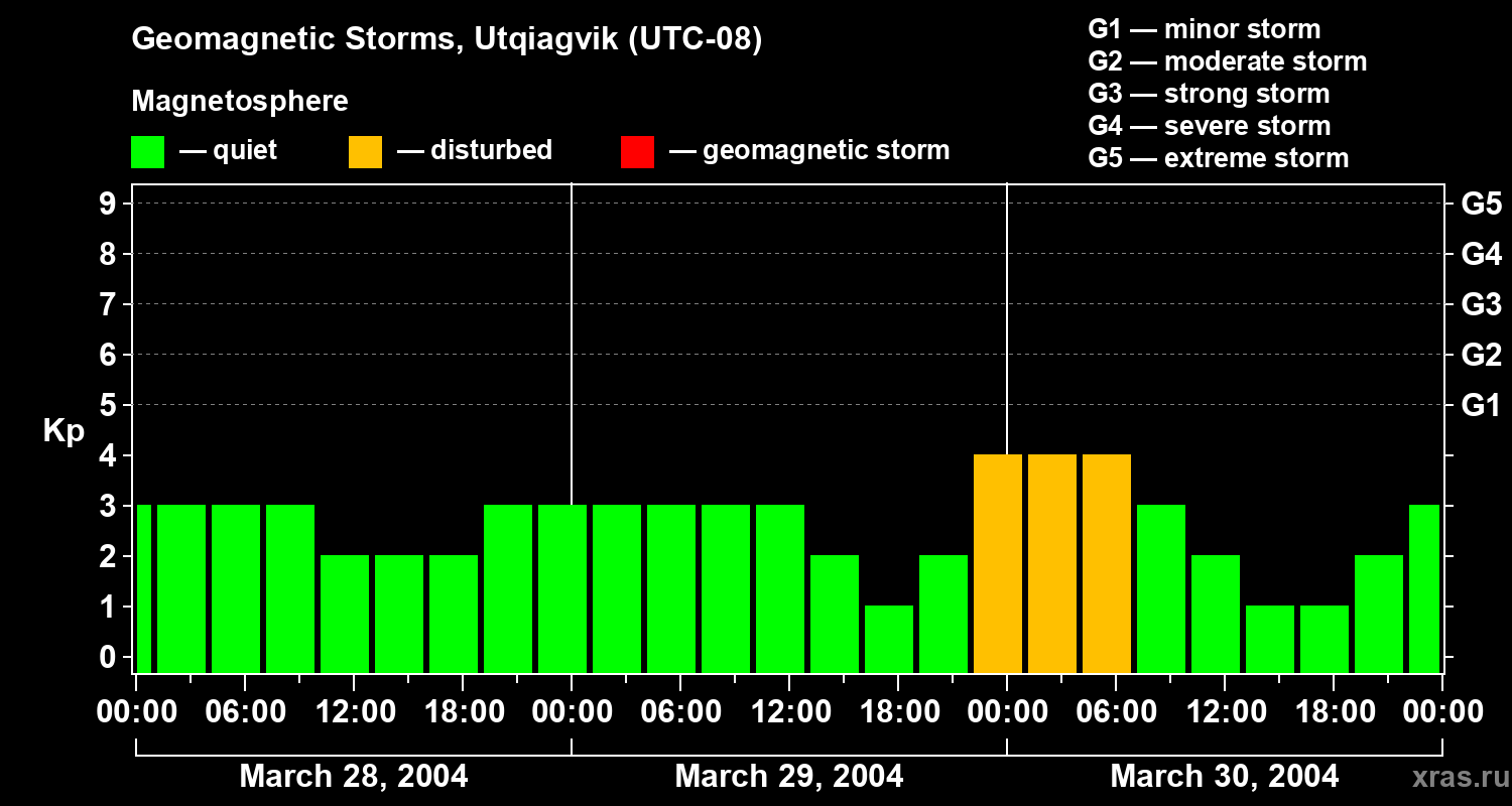 Geomagnetic storms in Utqiagvik — Mar 30, 2004