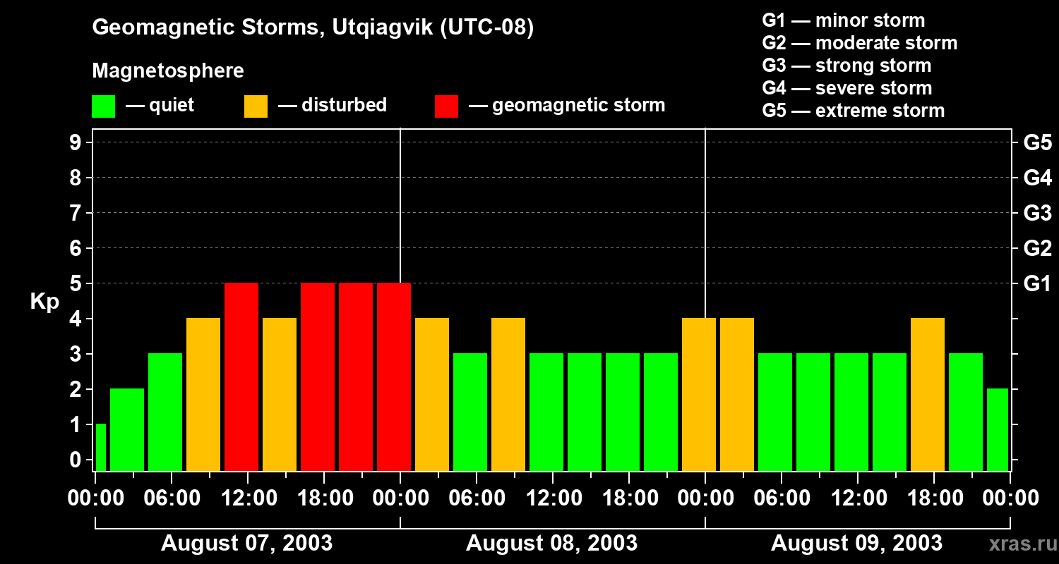 Geomagnetic storms in Utqiagvik — Aug 09, 2003