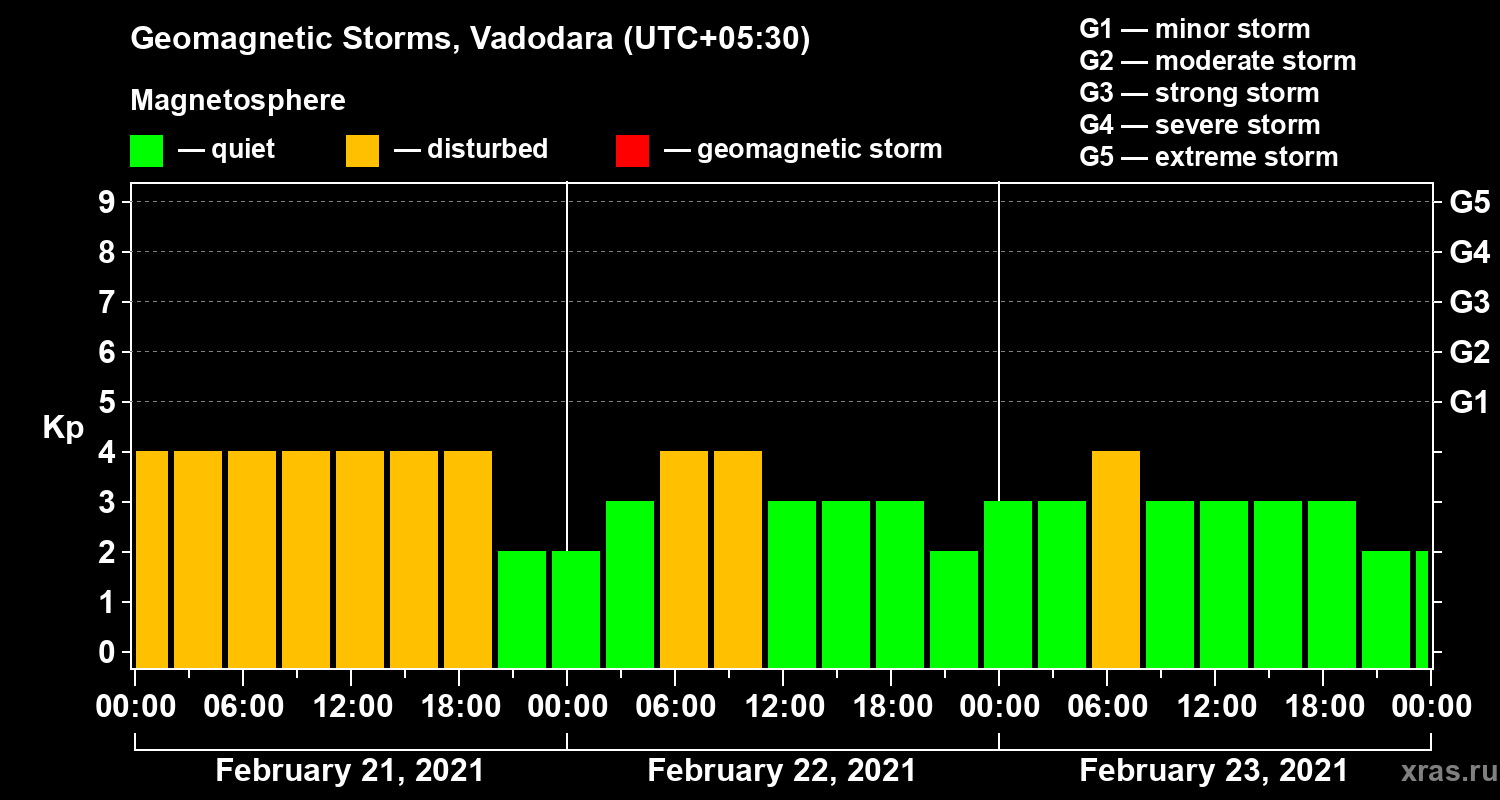 Geomagnetic storms in Vadodara — Feb 23, 2021