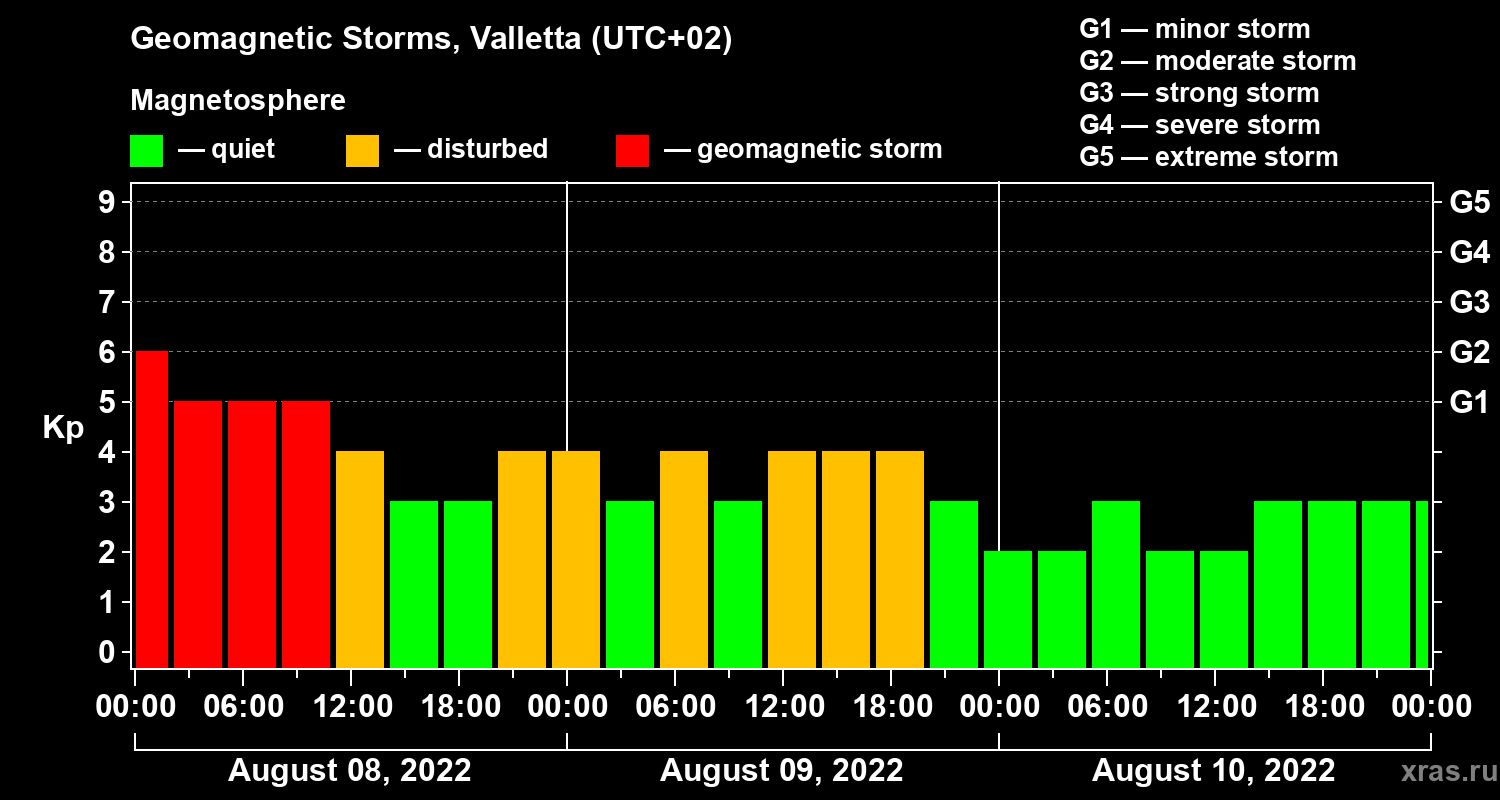Geomagnetic storms in Valletta on Aug 10, 2022