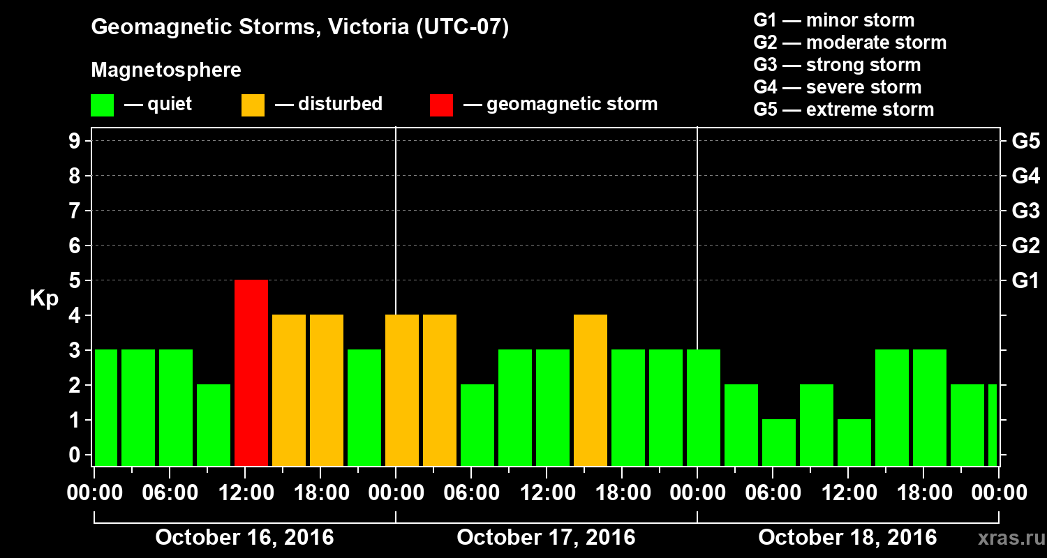 Geomagnetic storms in Victoria in October 2016