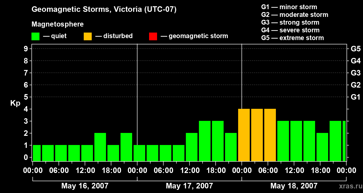 Geomagnetic storms in Victoria on May 18, 2007