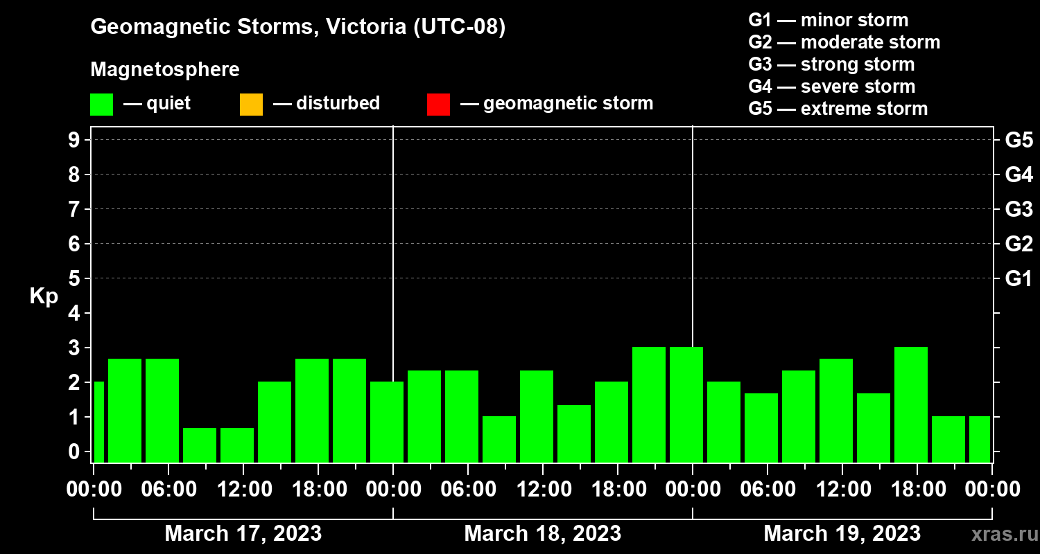 Geomagnetic storms in Victoria on Mar 19, 2023