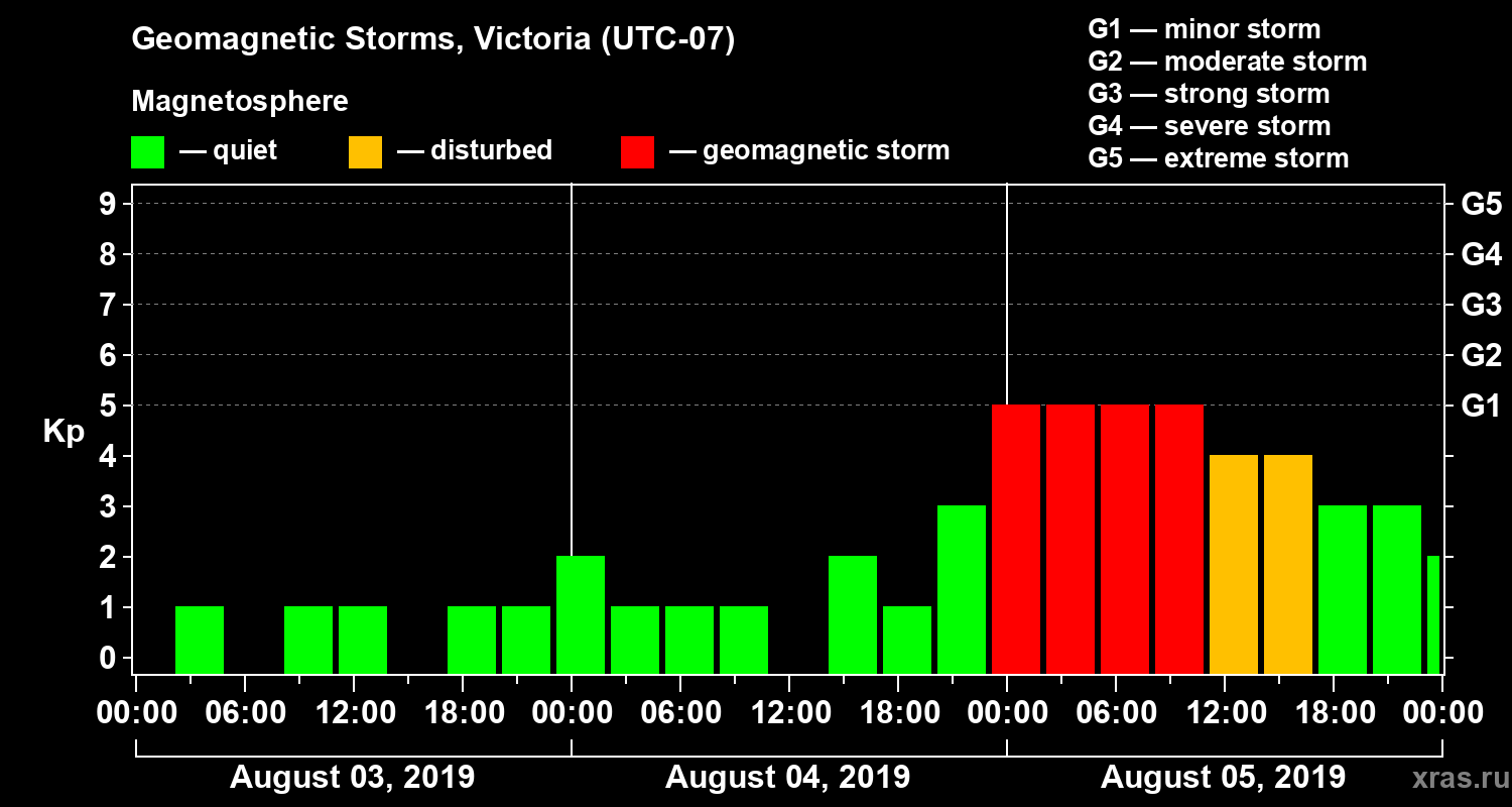 Geomagnetic storms in Victoria on Aug 05, 2019