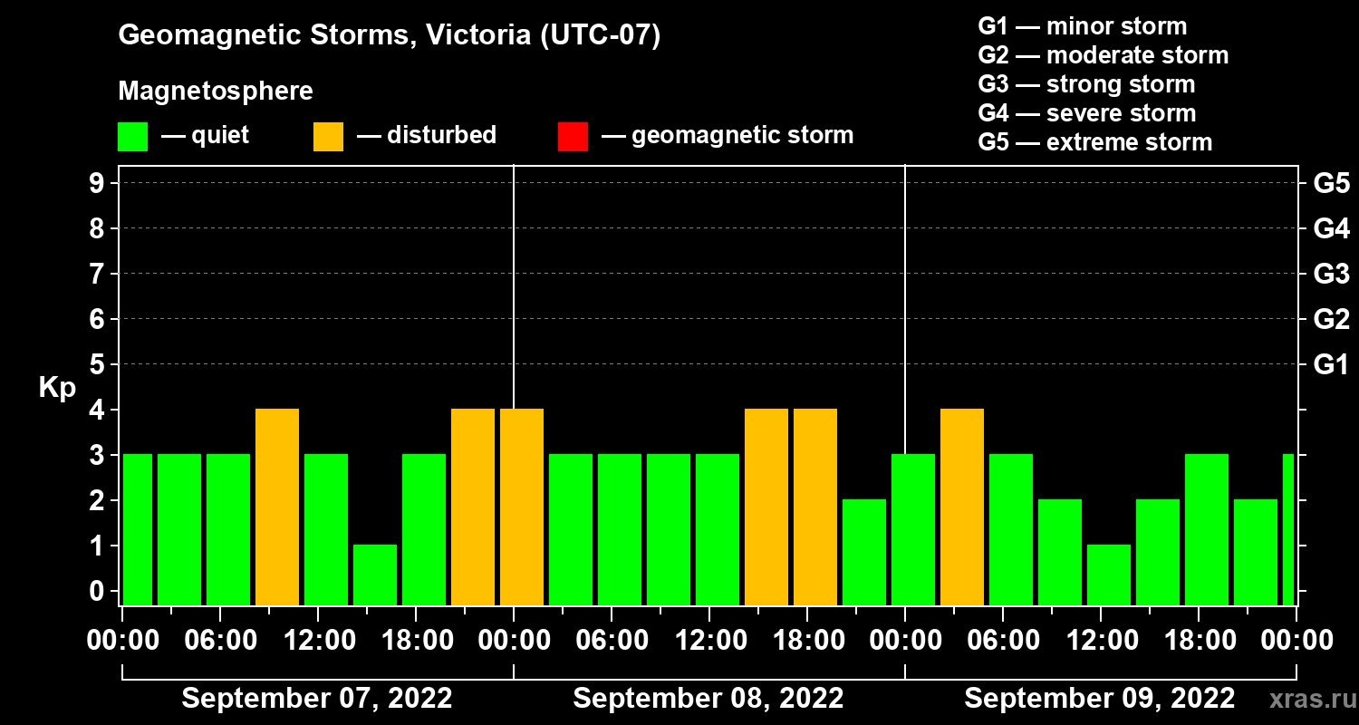 Geomagnetic storms in Victoria on Sep 09, 2022
