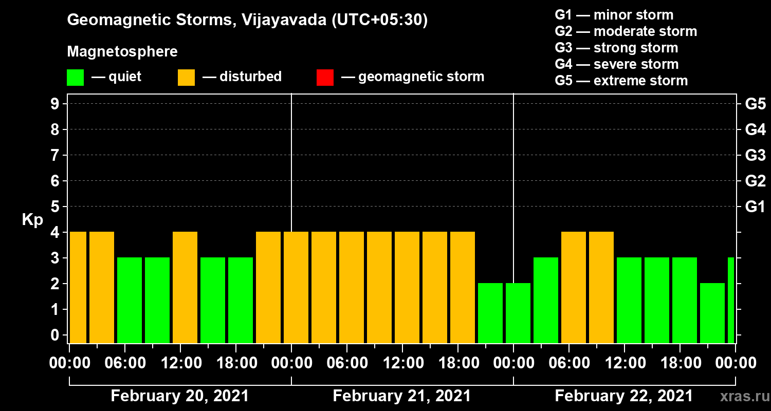 Geomagnetic storms in Vijayavada in February 2021