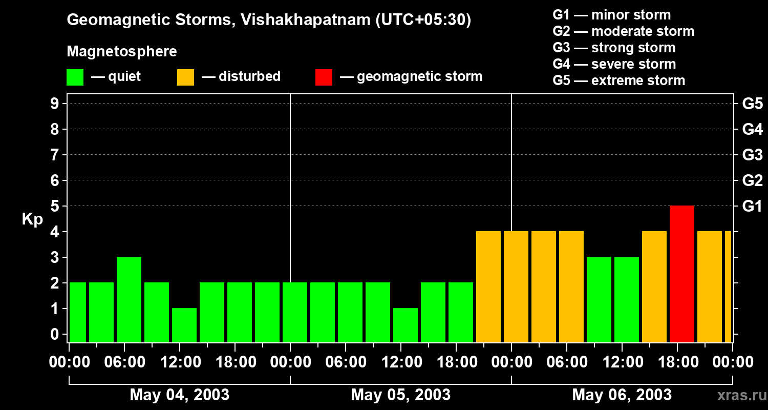 Geomagnetic storms in Vishakhapatnam on May 06, 2003