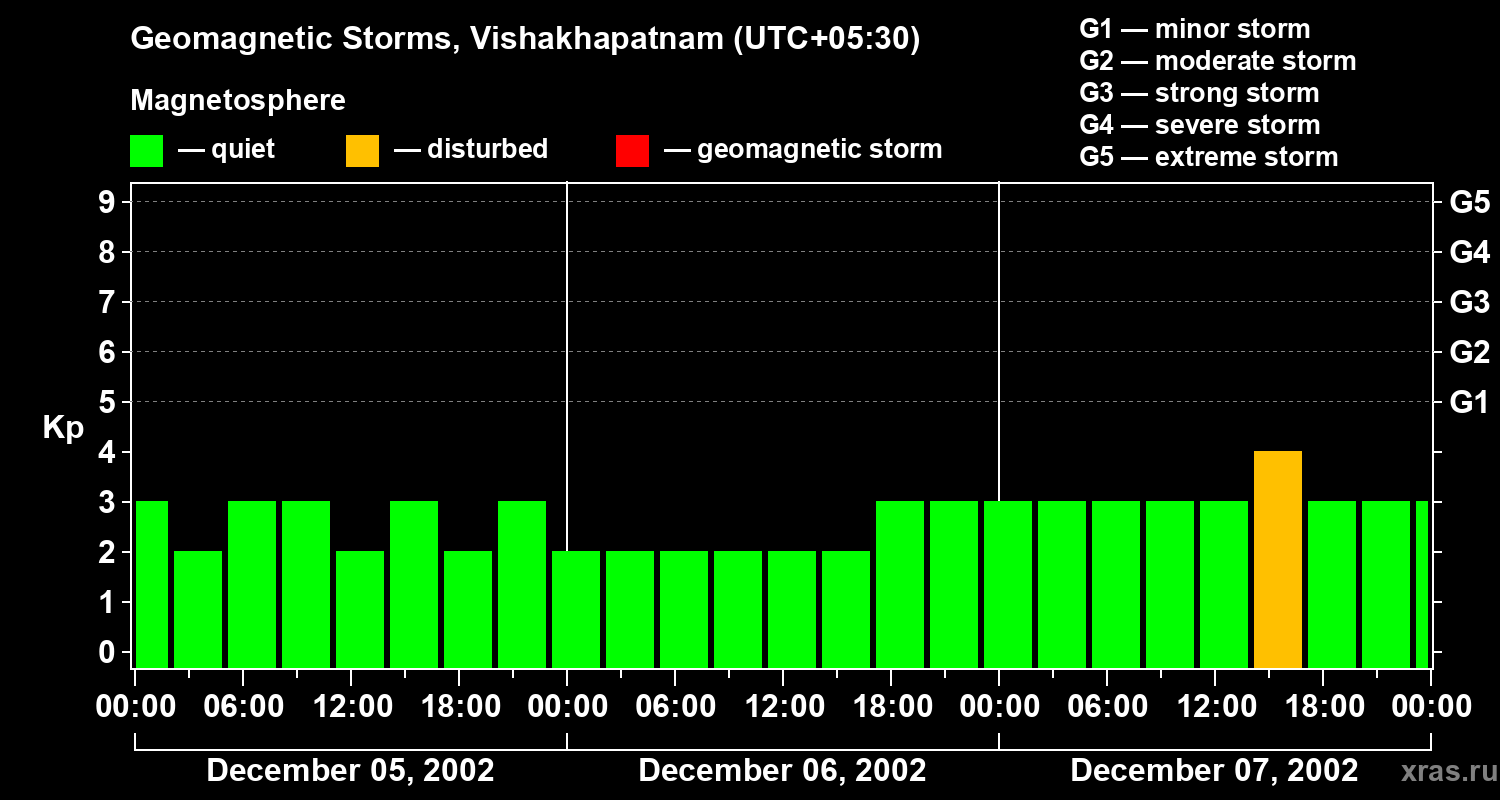 Geomagnetic storms in Vishakhapatnam on Dec 07, 2002