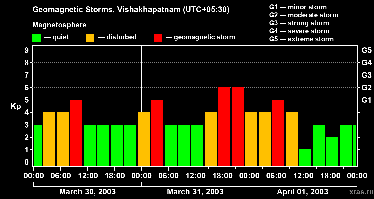Geomagnetic storms in Vishakhapatnam on Apr 01, 2003