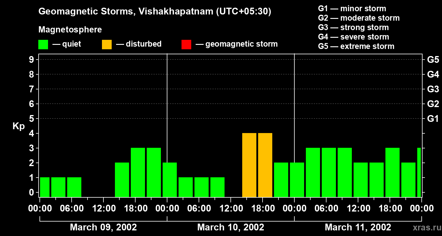 Geomagnetic storms in Vishakhapatnam on Mar 11, 2002
