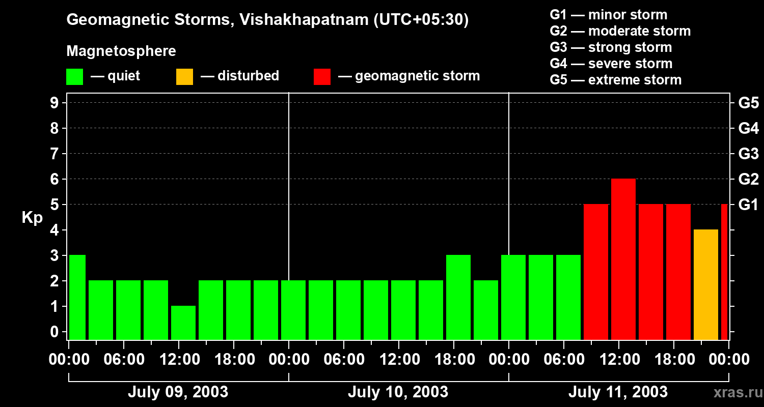 Geomagnetic storms in Vishakhapatnam on Jul 11, 2003