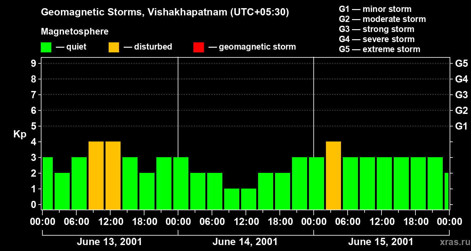 Geomagnetic storms in Vishakhapatnam on Jun 15, 2001