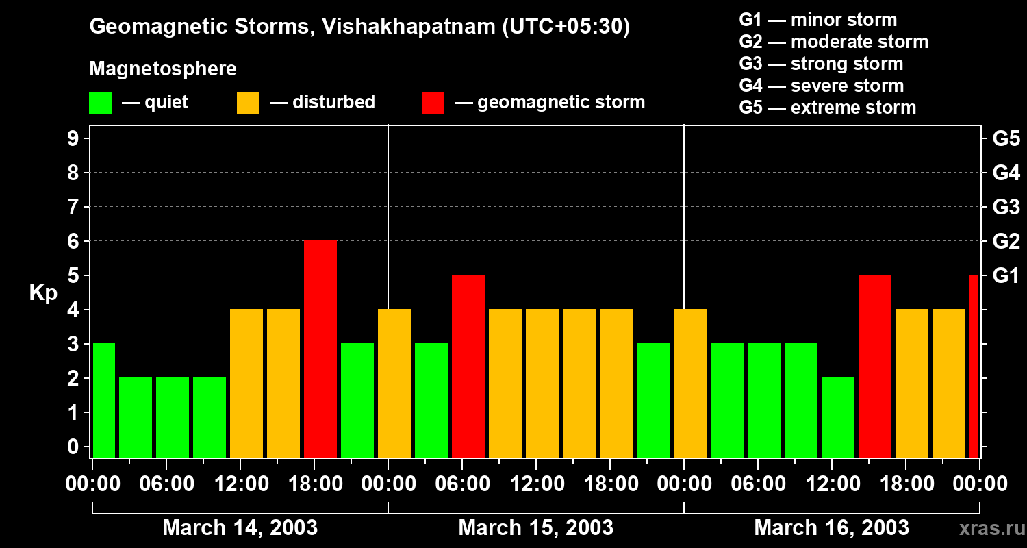 Geomagnetic storms in Vishakhapatnam on Mar 16, 2003