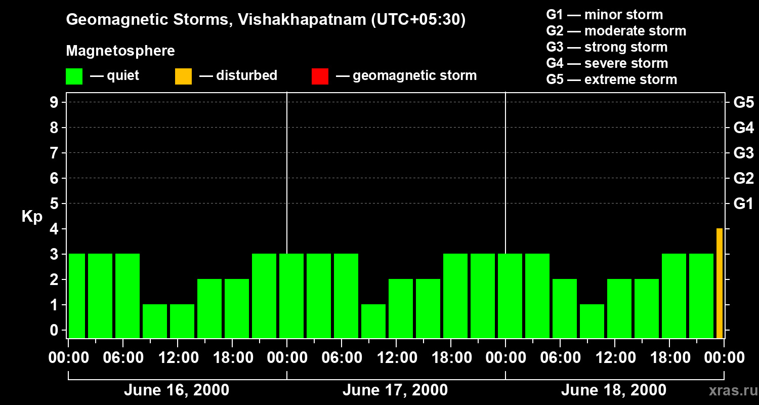 Geomagnetic storms in Vishakhapatnam on Jun 18, 2000