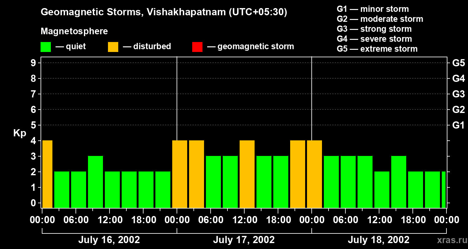 Geomagnetic storms in Vishakhapatnam on Jul 18, 2002