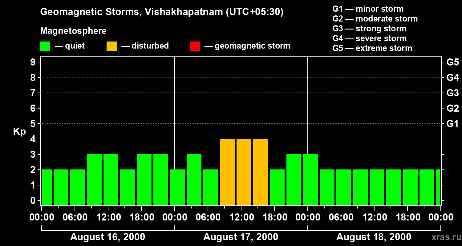 Geomagnetic storms in Vishakhapatnam in August 2000