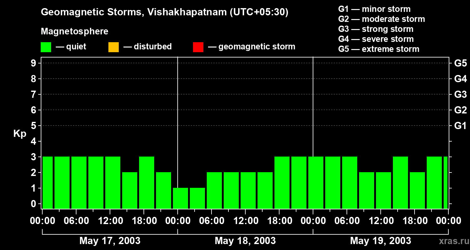 Geomagnetic storms in Vishakhapatnam on May 19, 2003