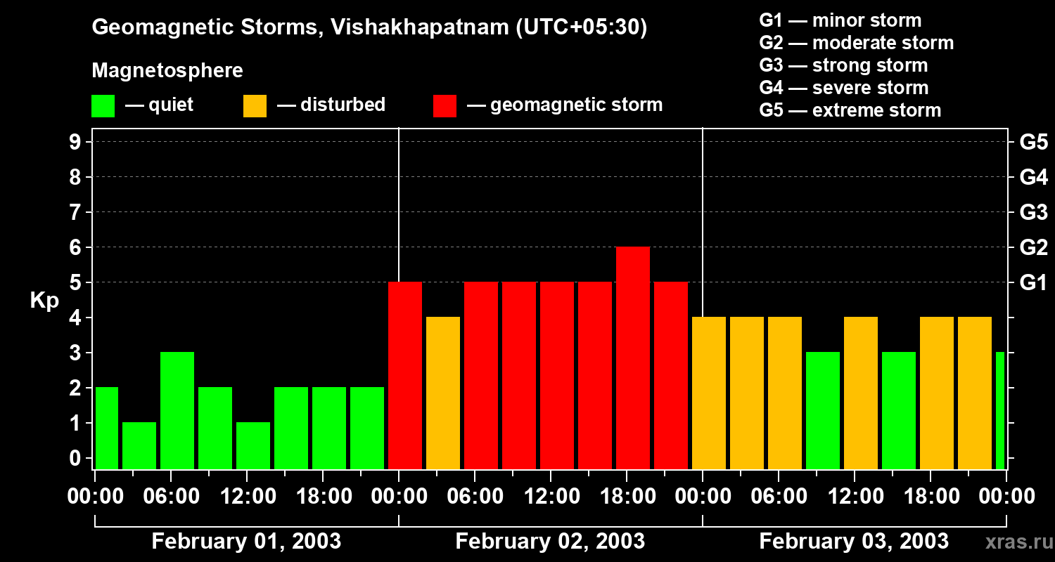 Geomagnetic storms in Vishakhapatnam — Feb 03, 2003