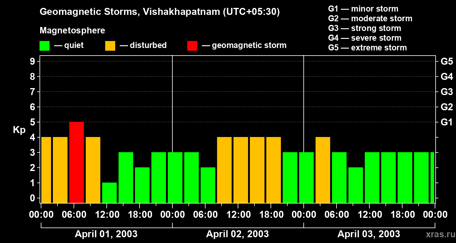 Geomagnetic storms in Vishakhapatnam on Apr 03, 2003