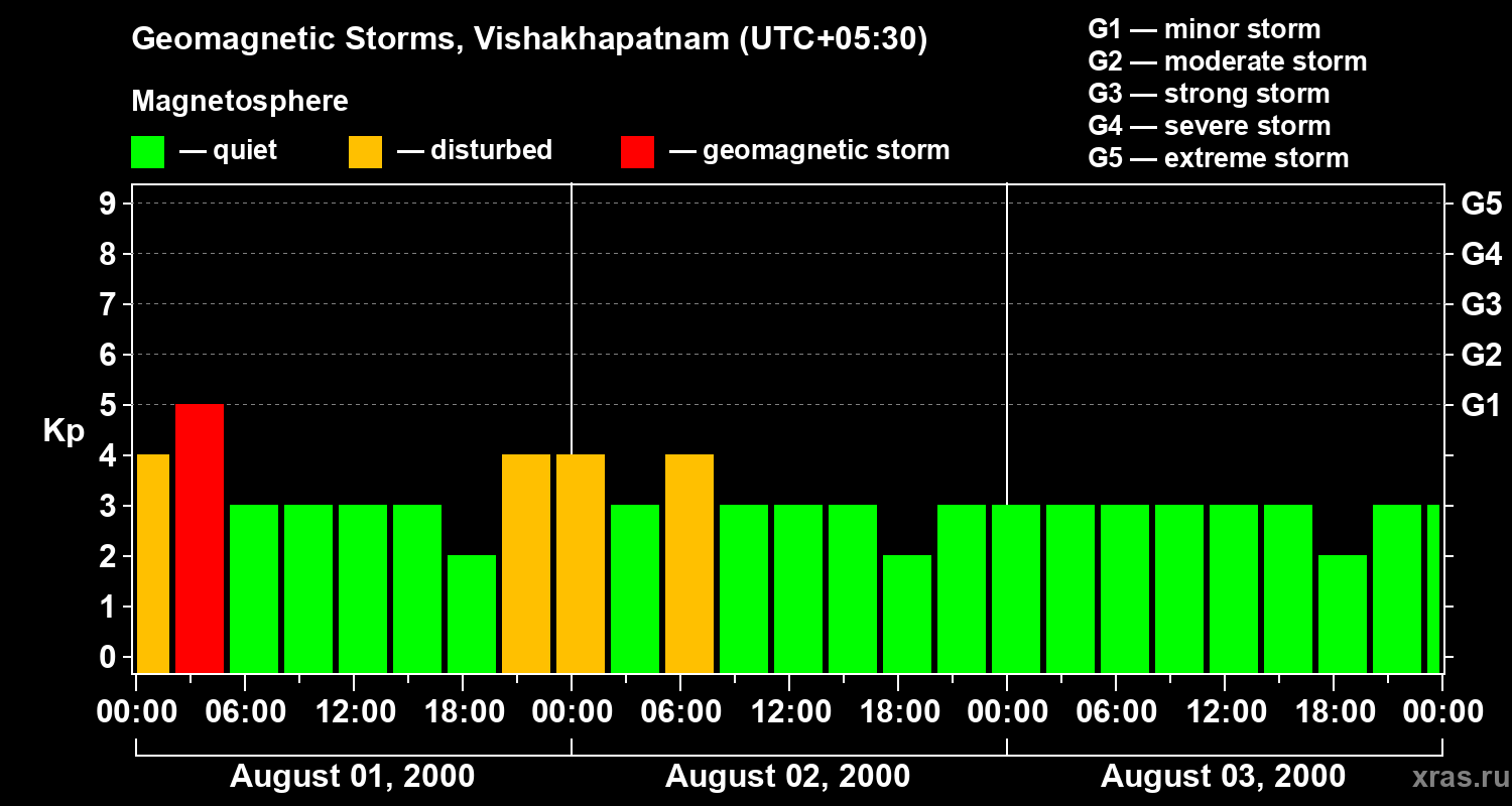 Geomagnetic storms in Vishakhapatnam on Aug 03, 2000