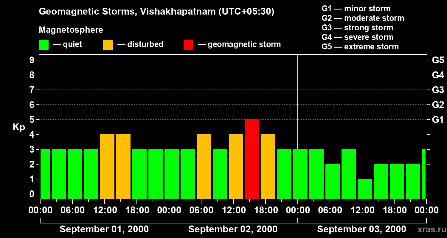 Geomagnetic storms in Vishakhapatnam on Sep 03, 2000