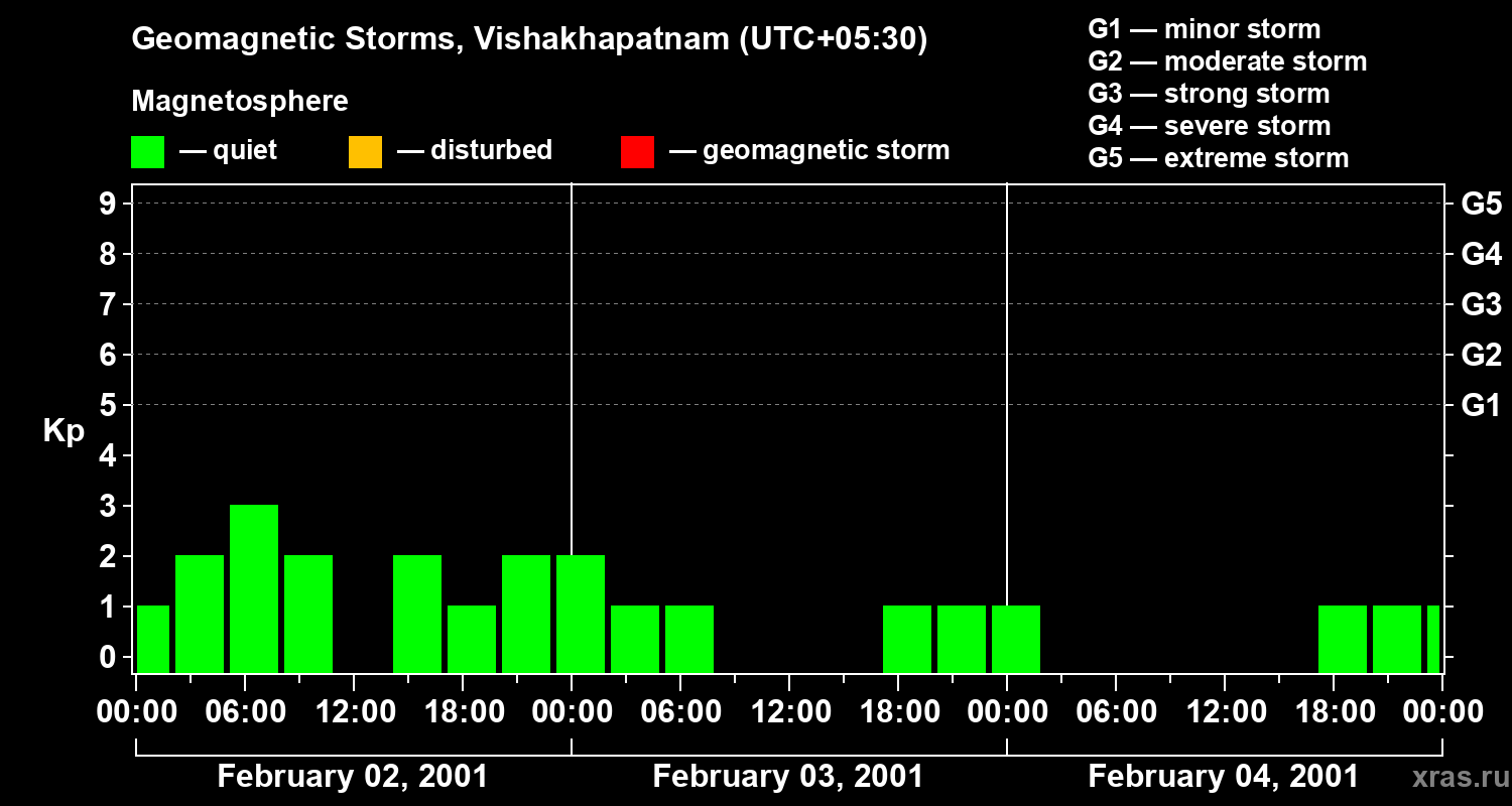 Geomagnetic storms in Vishakhapatnam on Feb 04, 2001