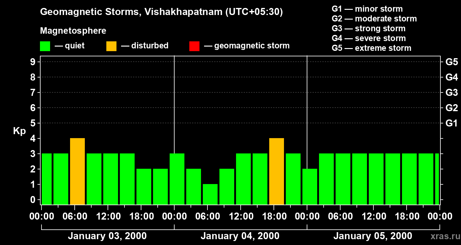 Geomagnetic storms in Vishakhapatnam on Jan 05, 2000