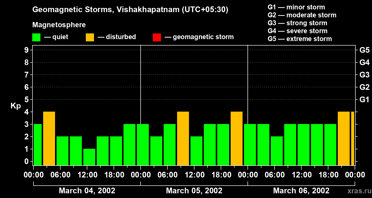 Geomagnetic storms in Vishakhapatnam on Mar 06, 2002