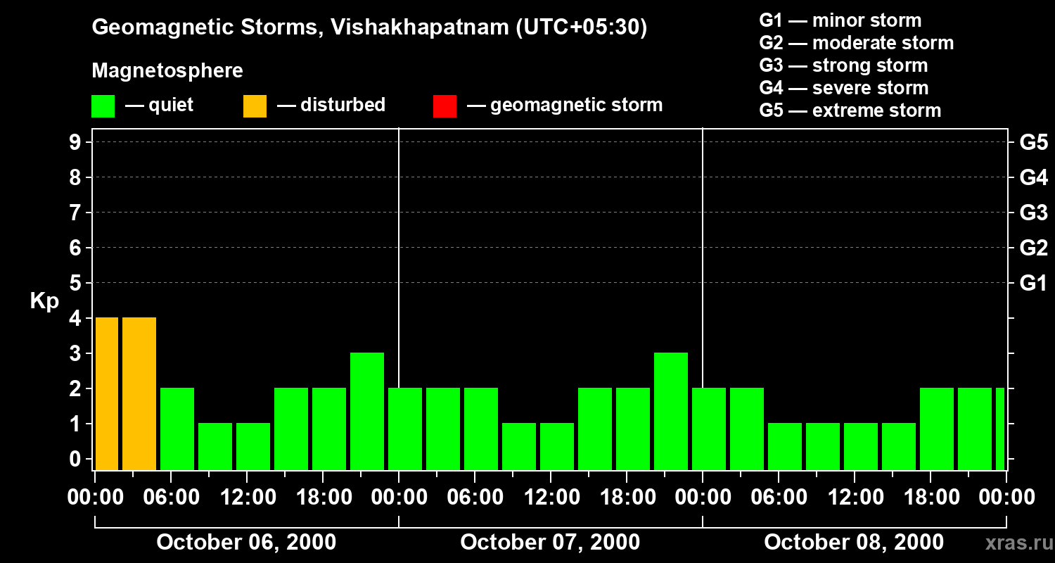 Geomagnetic storms in Vishakhapatnam on Oct 08, 2000