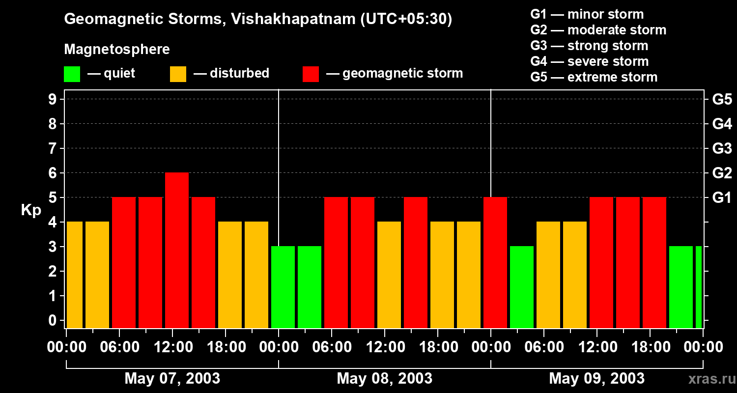 Geomagnetic storms in Vishakhapatnam on May 09, 2003