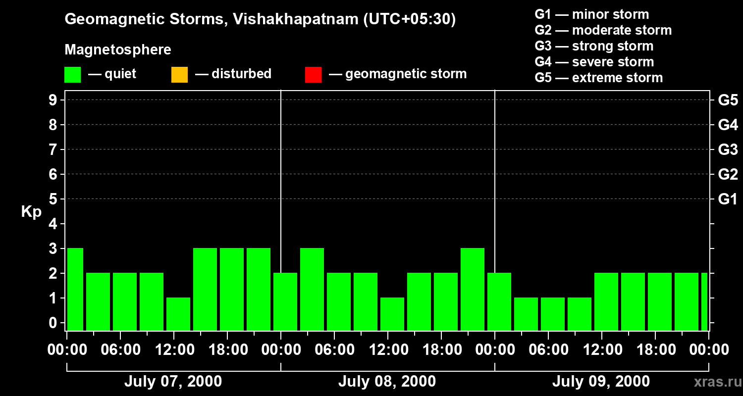 Geomagnetic storms in Vishakhapatnam on Jul 09, 2000