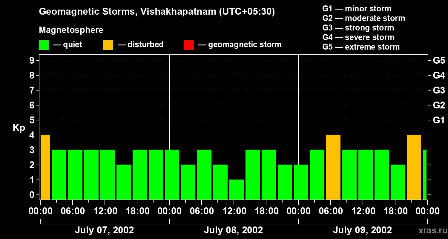 Geomagnetic storms in Vishakhapatnam on Jul 09, 2002