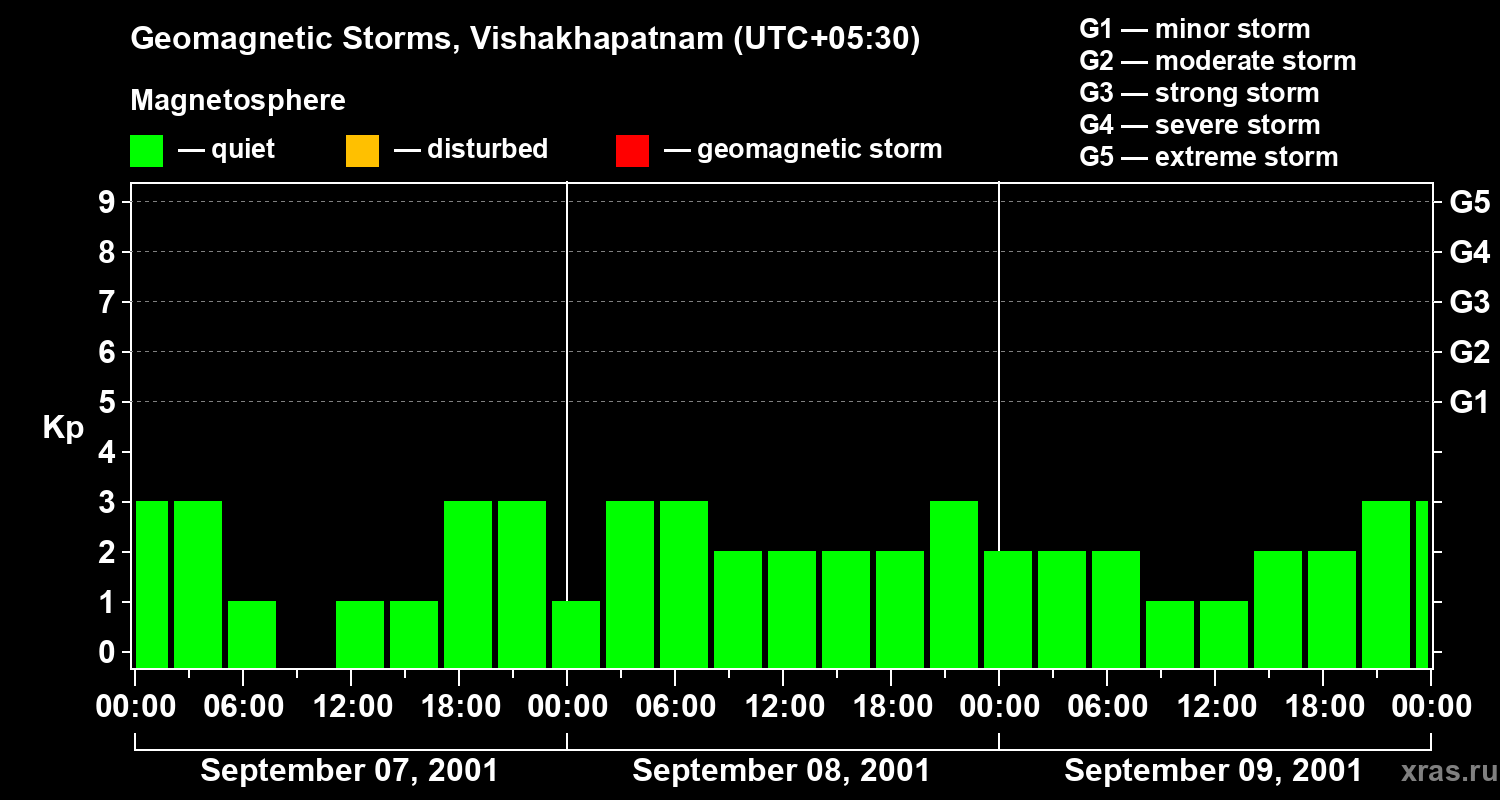 Geomagnetic storms in Vishakhapatnam on Sep 09, 2001