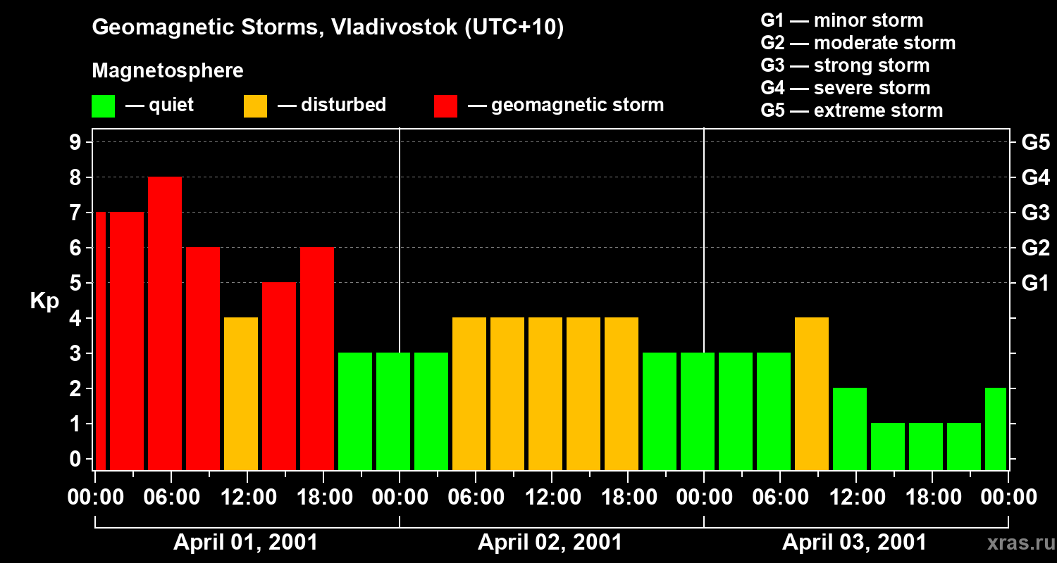 Geomagnetic storms in Vladivostok — Apr 03, 2001