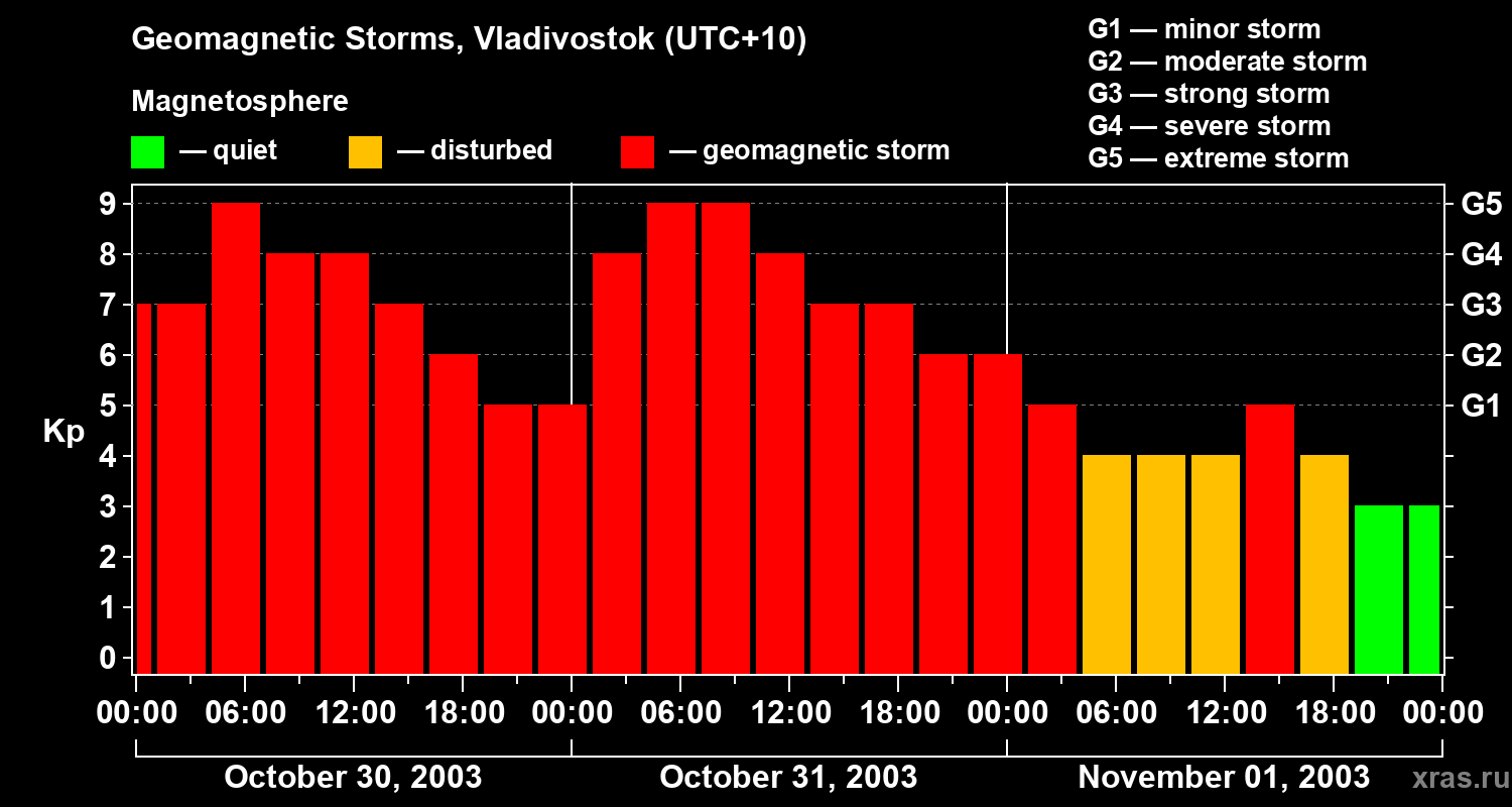 Geomagnetic storms in Vladivostok — Nov 01, 2003