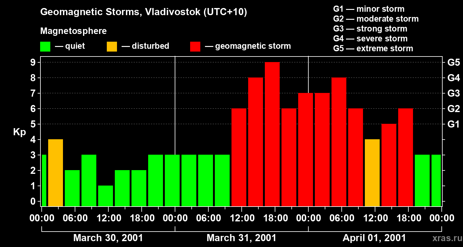 Geomagnetic storms in Vladivostok — Apr 01, 2001