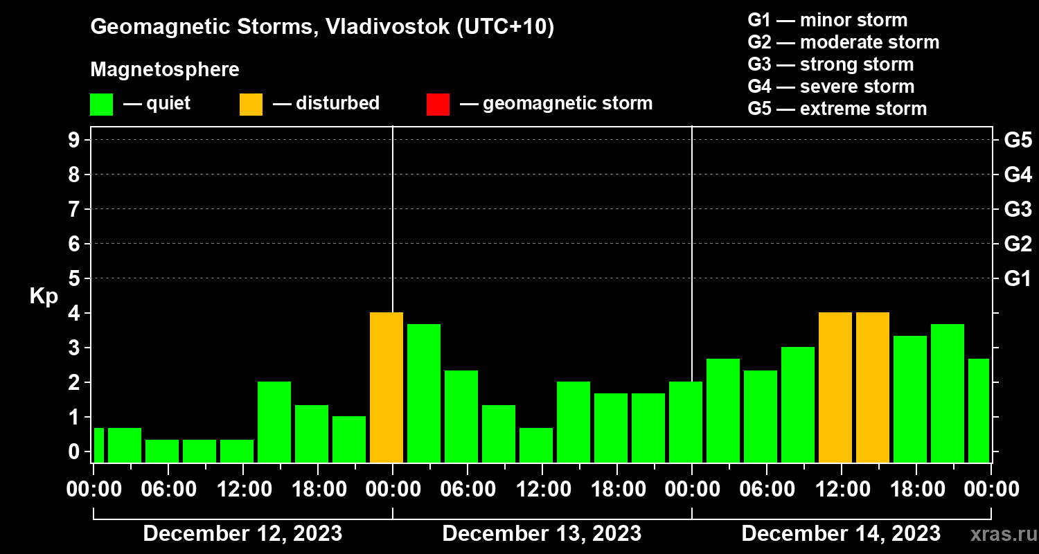 Geomagnetic storms in Vladivostok on Dec 14, 2023
