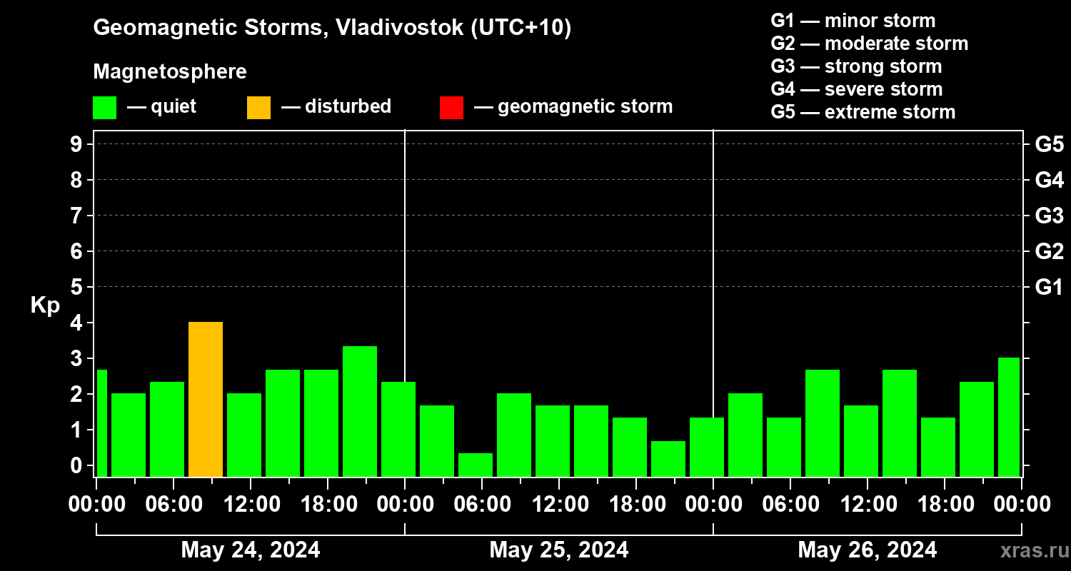 Geomagnetic storms in Vladivostok on May 26, 2024