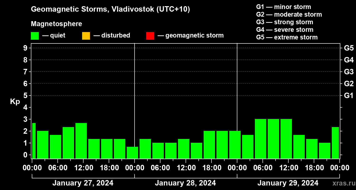 Geomagnetic storms in Vladivostok on Jan 29, 2024