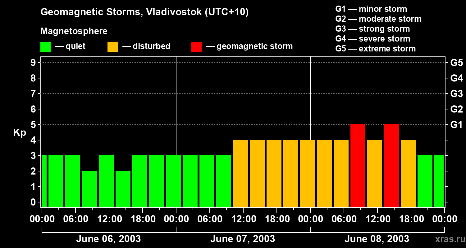Geomagnetic storms in Vladivostok on Jun 08, 2003